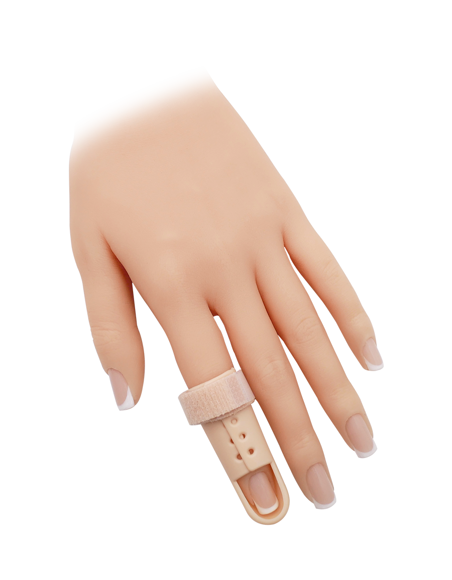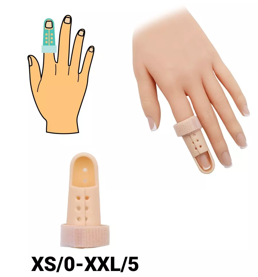 Orteză din plastic pentru imobilizarea ultimelor două articulații ale degetului cu fixare cu velcro. Protejează articulațiile falangeale distale. Simplu și practic de utilizat. Pur și simplu se pune pe deget și se fixează ferm cu velcro. Lejeritatea și rezistența materialului sunt optime pentru fixarea articulației degetului.