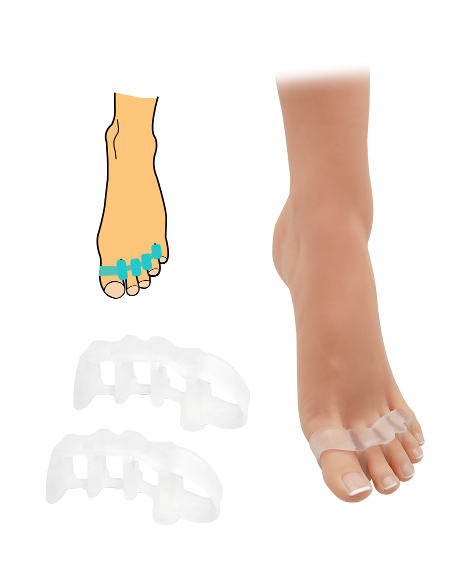 Separatorul între degete este un ajutor ortopedic potrivit pentru deformările degetelor. Datorită anatomiei sale, separă degetele deformate și astfel ameliorează durerea. Acest separator este potrivit pentru purtarea zilnică pentru a obține cele mai bune rezultate. Separatorul interdegete servește la separarea degetelor de la picioare și este util în micoza interdegete. Previne frecarea degetelor și formarea de vezicule. Îndreaptă degetele îndoite, îmbunătățind astfel stabilitatea piciorului. Previne formarea veziculelor pe fundul piciorului sub degete. Ameliorează tensiunea de la degete și în același timp îmbunătățește circulația sângelui în degete. Ajutor ortopedic nesolicitant pentru întreținere. Doar spălați-l în apă caldă și apoi lăsați-l să se usuce la temperatura camerei. Datorita siliconului pur din care este fabricat, se adapteaza la forma si marimea degetelor.| mărimea | universal |