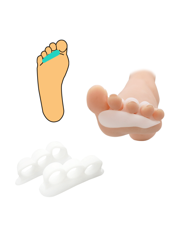 Separatorul de degete este un ajutor adecvat în tratamentul deformărilor degetelor. Separatorul este creat cu trei inele de gel care echilibrează degetele ciocanului care apar în boli ereditare precum diabet, psoriazis, reumatism. Deformarea apare și din purtarea de pantofi nepotriviți, degete înguste și tocuri înalte, cu picioare plate transversal și longitudinal. Există supraîncărcare a arcului piciorului și a articulațiilor individuale. Durerea, vânătăile și inflamația în zona oaselor proeminente și în partea din față a piciorului plat inferior sunt frecvente. Unghiile care se găsesc pe degetele deformate sunt în mare parte groase, asemănătoare cu ghearele, îngroșate și sunt adesea atacate de onicomicoză. Inelele de silicon cu care este realizat separatorul protejează și degetele de frecare și de formarea de vezicule. Îndreaptă degetele îndoite, îmbunătățind astfel stabilitatea piciorului. Previne formarea veziculelor pe fundul piciorului sub degete. Are o durată lungă de viață și este ușor de întreținut. Doar spălați-l în apă caldă și lăsați-l să se usuce la temperatura camerei.EAN: Universal: 85824652