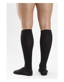 Șosete medicale pentru genunchi închise cu bumbac și compresie 23-32 mmHg. Ele previn formarea de noi vene varicoase și ajută la reducerea umflarea picioarelor și la tratarea emboliei, trombozei și a altor tulburări venoase ușoare. Benzile lor superioare din silicon hipoalergenic împiedică rularea genunchierelor. Au degetele și călcâiele întărite și cusăturile plate invizibile garantează confort și durabilitate maxime. Acești șosete cu compresie gradată pentru genunchi sunt foarte moi și de lungă durată datorită firelor de bumbac pur conținute în țesătură.