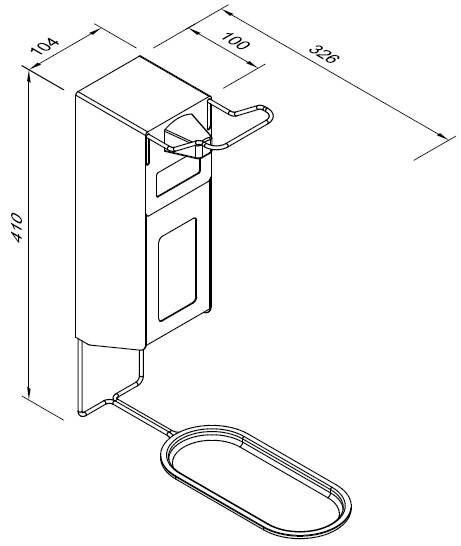 Dimensiuni dozator: inaltime 410 mm, latime 104 mm, adancime 100 mm (cu brat 200 mm, cu picurator 326 mm)