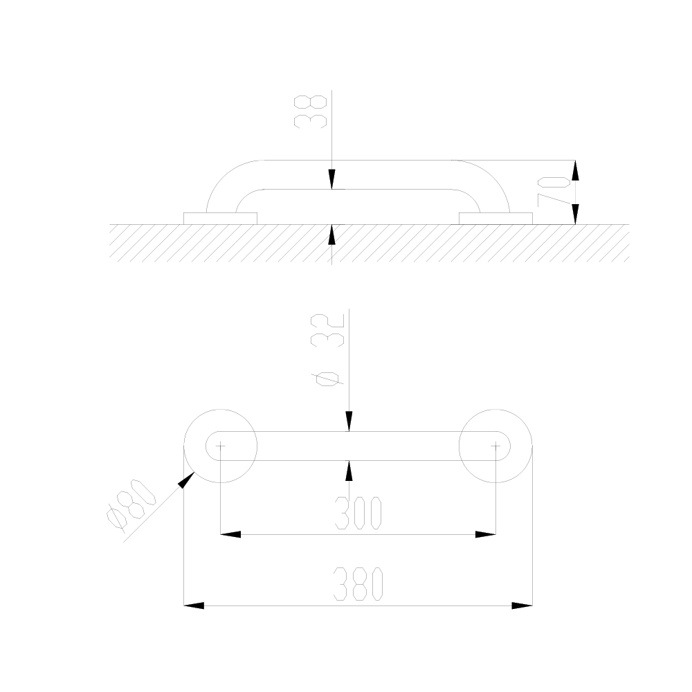 Balustrada din otel inoxidabil pentru baie si toaleta 300 mm - detalii: