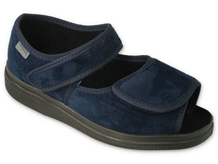 Încălțămintea medicală Dr. Orto este recomandată pentru sezonul estival ca încălțăminte pentru exterior, dar poate fi purtată confortabil și acasă ca papuci. Fabricată din materiale moi, de înaltă calitate, este ideală pentru cei ale căror picioare sunt deosebit de sensibile la abraziune, de exemplu, cei cu picioare diabetice. Închiderea flexibilă și ușoară cu velcro se adaptează ușor la forma piciorului.