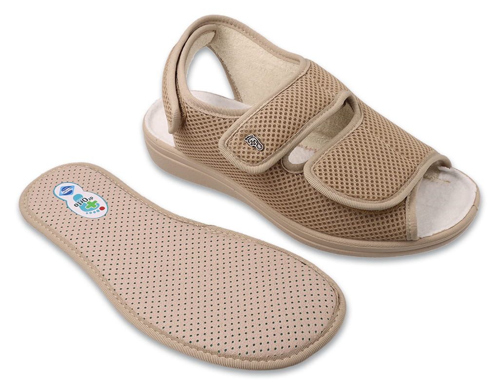 Pantofii Dr. Orto sunt recomandați pentru sezonul estival ca pantofi formali, dar pot fi purtați confortabil și acasă ca papuci. Fabricați din materiale moi, de înaltă calitate, sunt ideali pentru cei ale căror picioare sunt deosebit de predispuse la abraziune. Flexibili și ușori, datorită închiderii cu velcro, se adaptează ușor formei piciorului.