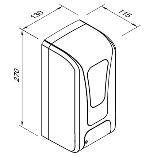 Dimensiuni dozator: Înălțime 270 mm, lățime 130 mm , adâncime 115 mm. Dimensiuni cutie 1 buc.: Înălțime 275 mm, lățime 135 mm, adâncime 120 mm.
