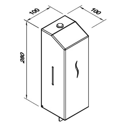 Dimensiunile dozatorului: Înălțime 280 mm, lățime 100 mm, adâncime 100 mm