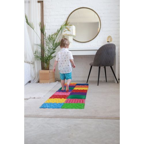 Am desfășurat întreaga activitate demonstrativă pe salteaua de masaj Ortek. Copilul va asambla un puzzle, tu vei reda un videoclip - copilul îl va face! Îl faci de 3-5 ori pe săptămână. După doar o lună de activitate, rezultatele sunt vizibile. Mușchii lor se vor întări, iar mersul lor va fi mai încrezător.
